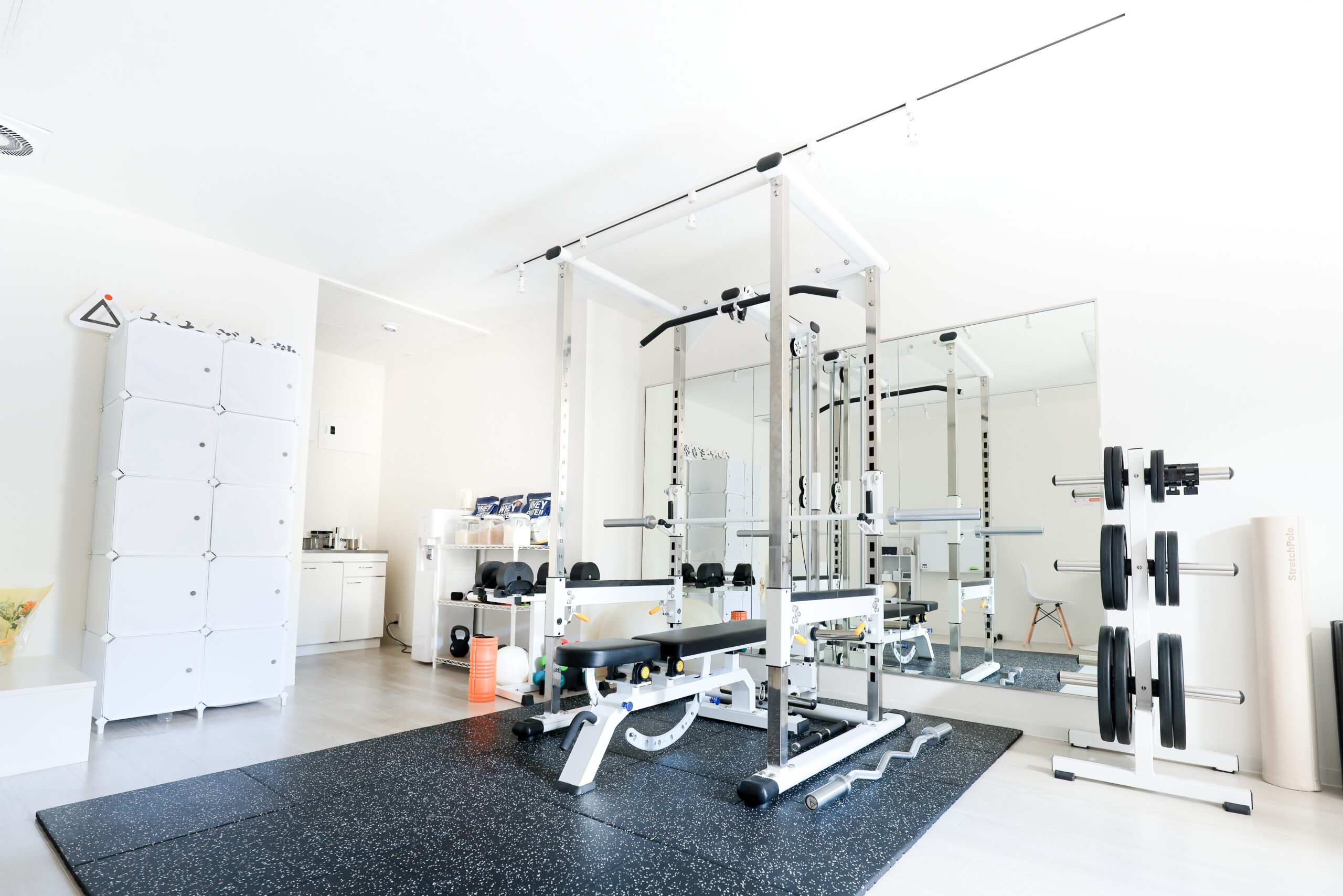 新しくて清潔感ある、白を基調にしたトレーニングルームで気持ちよく体験してきました。